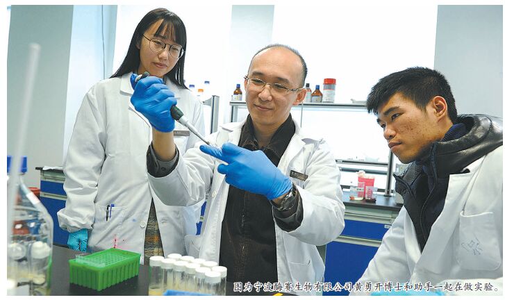 2013年,通過寧波科協(xié)舉辦的“海智寧波行”牽線搭橋,黃勇開項目團隊與寧波合作方建立聯(lián)系,并于當年12月組建寧波酶賽生物工程有限公司,主要通過研究酶催化技術,針對手性藥物進行高附加值酶的個性化研發(fā)和產業(yè)化開發(fā)。